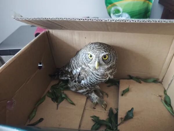 辅警把斑头鸺鹠移交给林业部门工作人员。 通讯员舒星 摄